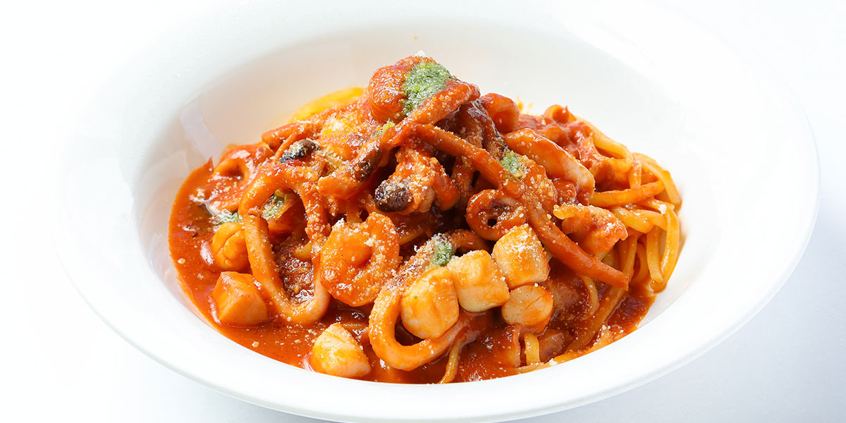 フレッシュトマトで作る真剣なトマトソースと彩りのある野菜を使っています。