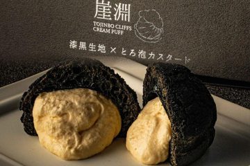 偉大な東尋坊の岩石をイメージ。東尋坊の岩肌を思わせる真っ黒ザクっとシューには、日本海の海水で手作りされた越前塩を使用。中にはとろけるなめらかさを追求した、こだわりの生カスタードクリームがぎっしり詰められています。