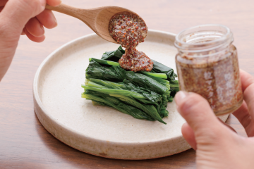 福井県若狭町の山内集落のみで栽培される伝統野菜「山内かぶら」のタネで粒マスタードを作りました。梅酢のさわやかな味わいと粒がぷちぷちと口の中で弾ける楽しい食感が特徴。「山内かぶら」本来の風味を引き出せるよう梅酢とはちみつでシンプルに仕上げたやさしい辛さの粒マスタードです。