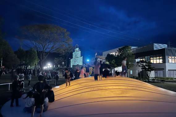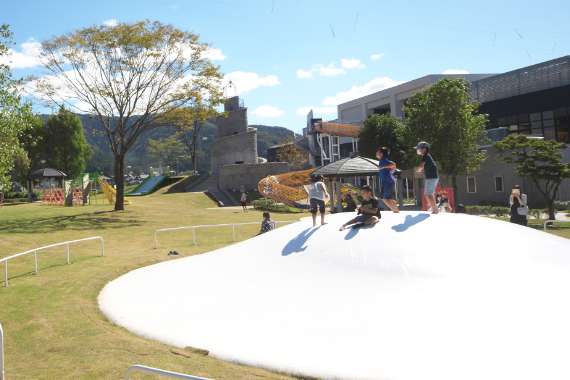 低年齢から高学年の児童までが利用できるようエアー遊具「ふわふわドーム」が出現。
